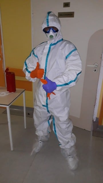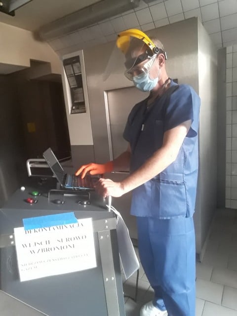 W rozmowie podkreśla, że w żaden sposób nie czuje się bohaterem. Realizuje po prostu swoje powołanie w pracy, którą stara się wykonywać najlepiej jak można. A co robi? Przy pomocy nowoczesnej technologii przeprowadza na terenie szpitala dekontaminacje pomieszczeń, tj. sal chorych, sal intensywnej terapii i bloku operacyjnego. Ma to za zadanie nie tylko nie dopuścić do zakażenia innych pacjentów. Zapewnia także personelowi medycznemu sterylne warunki, bezpieczeństwo, jak również komfort pracy. Na pytanie, czy się boi, odpowiada:
