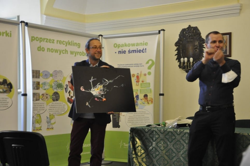 Ekologia bez tajemnic – tak moglibyśmy zatytułować tegoroczne świętowanie w Fundacji FONIS Międzynarodowego Dnia Głuchych. Właśnie pod hasłem ekologii upłynęło nam sobotnie popołudnie. Najpierw w sali Centrum Duszpasterskiego Archidiecezji Wrocławskiej przy Katedralnej 4 uczestniczyliśmy w wykładzie ekologa i podróżnika pana Dominika Dobrowolskiego na temat plastiku. Zaproszony gość w bardzo ciekawy sposób opowiadał, jak walczyć z plastikowymi odpadami, a także co każdy z nas może zrobić, aby nie zaśmiecać środowiska. Niezwykle zaskakujące były zdjęcia „skarbów”, które pan Dominik znalazł, wędrując po polskim Wybrzeżu z misją oczyszczenia plaż Morza Bałtyckiego. To nieprawdopodobne ile surowców marnujemy, wyrzucając byle gdzie butelki, puszki, reklamówki i inne przedmioty.