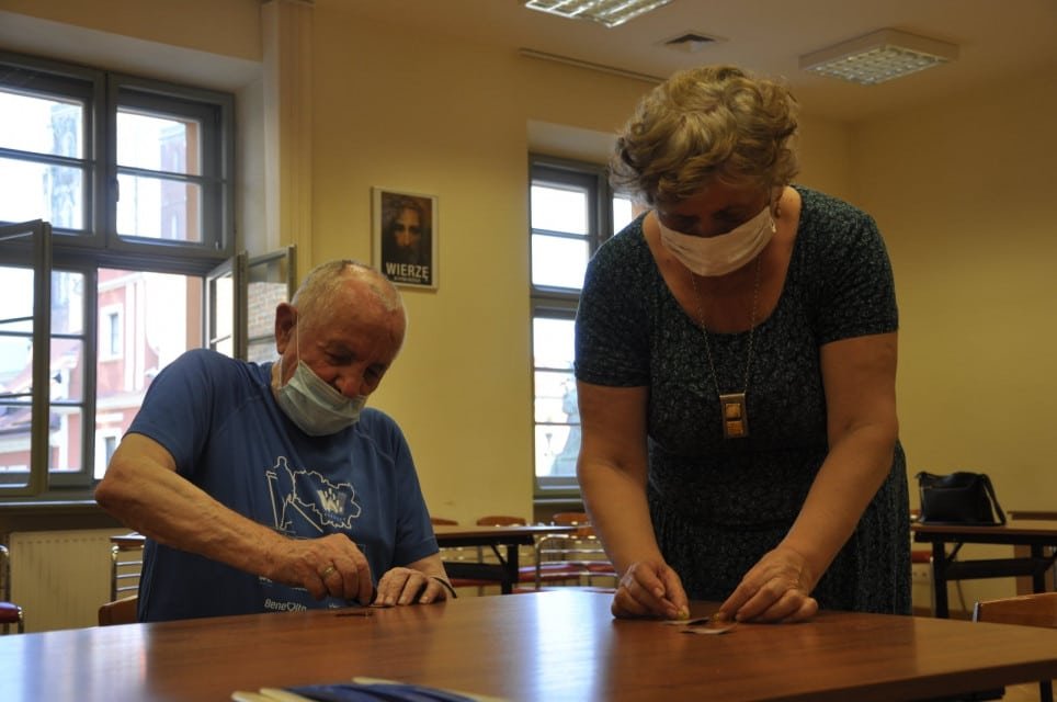 A co robili? Otóż wycinali, szlifowali, oklejali, lutowali… A wszystko to po to, by wykonać piękne, szklane, kolorowe serca. I tak jak zawsze, również i tym razem nasi seniorzy pracowali z ogromnym zaangażowaniem i pasją. W wykonanie kolorowych serc trzeba było włożyć dużo serca, a także cierpliwości. Jak się okazało wszyscy uczestnicy mieli i serce, i cierpliwość oraz bardzo sprawne ręce do wykonania małych arcydzieł.