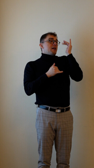 Punktem kulminacyjnym spotkania było ogłoszenie wyników konkursu na znak migowy „Koło Wrocław Miga”. Zwycięzcą został Jakub Stanisławczyk. Oto przygotowana przez niego propozycja.
