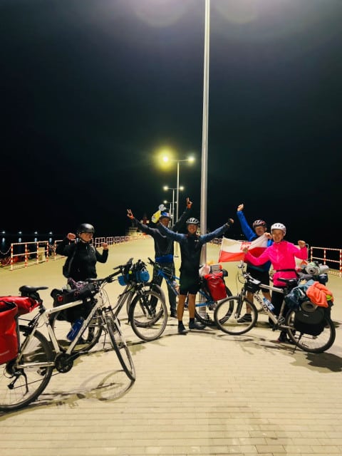 Na start w piątek 11 sierpnia na granicy polsko-niemieckiej w Świnoujściu stawiły się cztery osoby (piąta dołączyła dzień później). Były to dwie panie i trzech panów z Wrocławia, Warszawy, Łodzi i Poznania. Podczas ośmiu dni pokonali dystans ponad 600 km odwiedzając między innymi Mrzeżyno, Darłowo, Łebę, Hel czy też Krynicę Morską. Podróż była wymagająca, gdyż wiele razy na trasie pojawiały się odcinki o niesprzyjającej błotnistej nawierzchni. Ponadto kilkukrotnie przydarzyła się dziurawa opona, dwa razy zgubienie telefonu. Mimo to uczestnicy zgodnie twierdzą, że była to wspaniała przygoda. Piękne krajobrazy, ludzka życzliwość i solidarność na trasie, czy też barwne zachody słońca to tylko niektóre z jej walorów. To właśnie one były swoistą nagrodą dla naszych rowerzystów. Inną nagrodą były gofry, które zafundowali sobie uczestnicy wyprawy po dotarciu do celu.