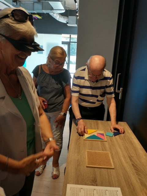 Wśród naszych seniorów najwięcej emocji budziły te stanowiska, przy których można było się fotografować. Wiele więc osób robiło sobie zdjęcie w pokoju do góry nogami, na iluzorycznym krześle lub też w krzywym zwierciadle. Poniżej prezentujemy kilka zdjęć (więcej na naszym profilu fb). I choć to tylko iluzja, to musicie przyznać, że robi wrażenie:)