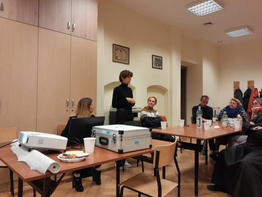 Spotkanie – jak na katolicką wspólnotę przystało:) – rozpoczęło się od Mszy Świętej. O tłumaczenie na język migowy zadbał ks. Tomasz i Dorota, która jest wolontariuszką Fundacji i należy do wspólnoty Droga. To właśnie dzięki niej otrzymaliśmy zaproszenie na wtorkowe spotkanie. Po Mszy przeszliśmy do sali, aby przy poczęstunku opowiedzieć zebranym o świecie ciszy. Prelekcję zatytułowaną „Fakty i mity o świecie ciszy” poprowadziło czworo przedstawicieli naszej Fundacji. Byli to: ks. Tomasz, Edyta, Krzysztof i Paweł.
